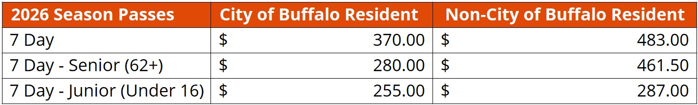 Check out 2026 Season Pass pricing below! Gift certificates now available for purchase. Email MichaelR@bfloparks.org for more information, and please include your Full Name and preferred phone number for a call back. Thank you!